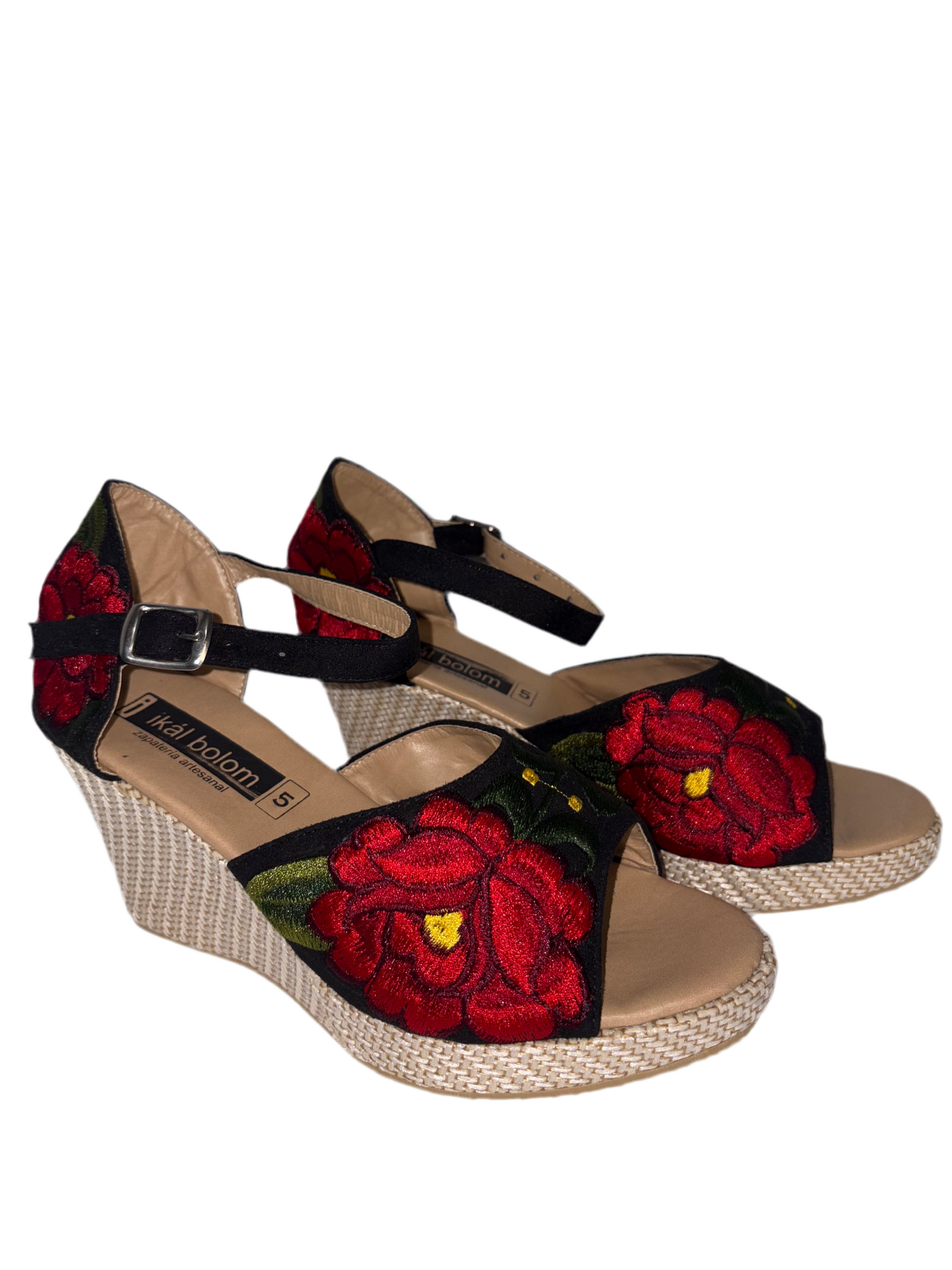 Handcrafted Wedge Sandals with Floral Embroidery (Sandalias artesanales de plataforma con bordado floral)